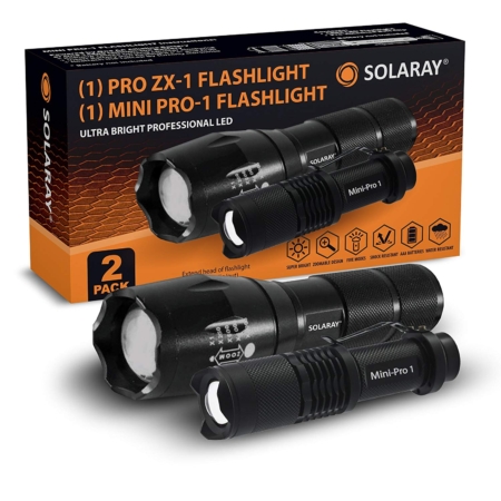 The ZX-2 LED Flashlight and Mini-Pro 1 uses an ultra-bright, U.S. made CREE XML-T6 powered LED chip. This allows our flashlight to deliver up to ~1,200 and 300 lumens worth of illumination respectively. Its lightweight yet sturdy aluminum design makes it ideal for use in rugged situations. Its small size makes it perfect for keeping in your car’s center console or inside your purse.